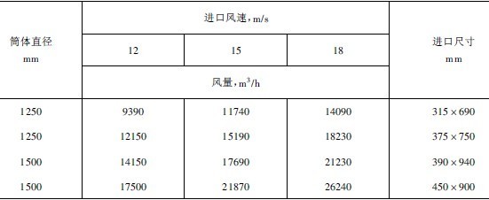 表1旋風(fēng)集塵器氣流入口速度與分離粒度的關(guān)系