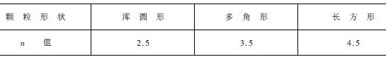 表2 n值與形狀的關(guān)系(顆粒粒度1mm)