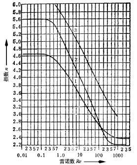 按摩爾朗德(Moreland)等的研究,n值還與雷諾數(shù)有關(guān),其關(guān)系示于圖1中。雷諾數(shù)按